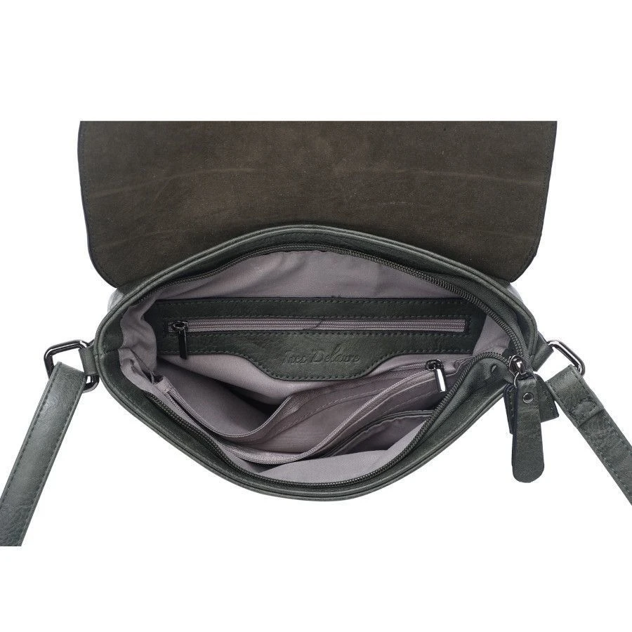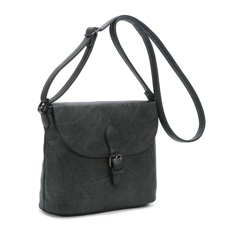 Sac Besace Porté Croisé Effet Bimatière Zippé Et Bride à Boucle Décor