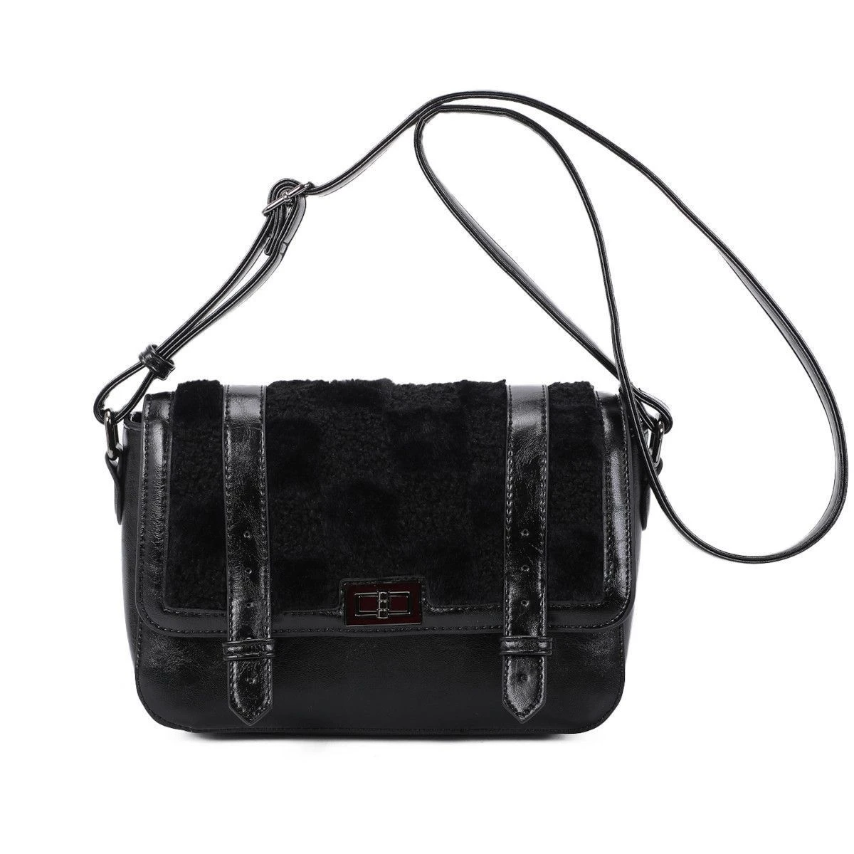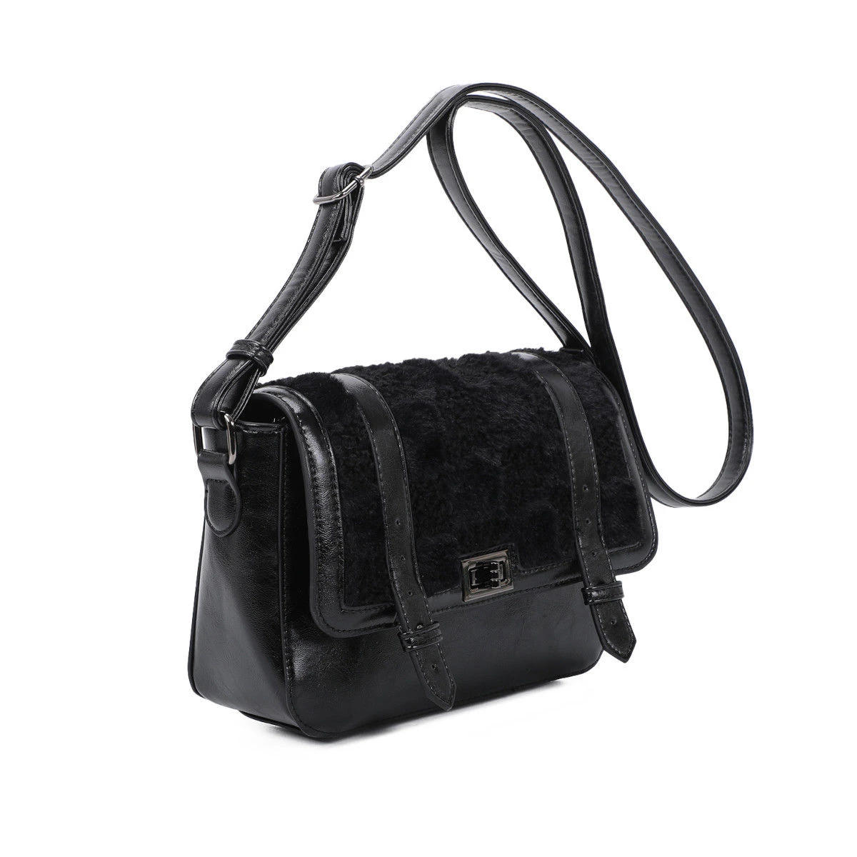 Sac à bandoulière bimatière qui affiche un design robuste et structuré.