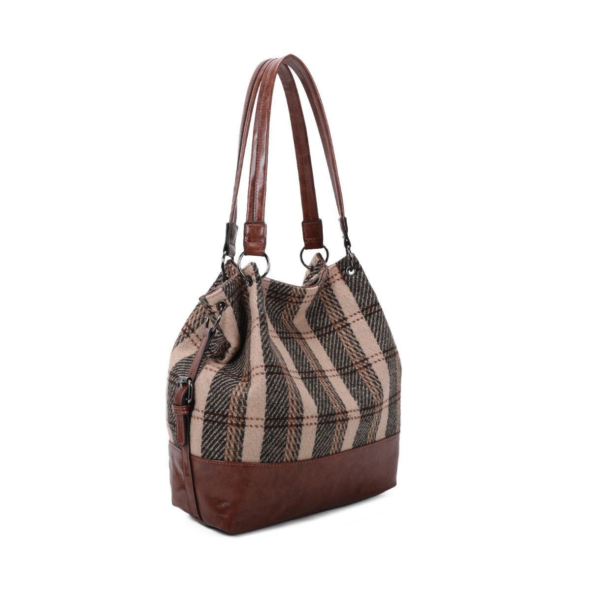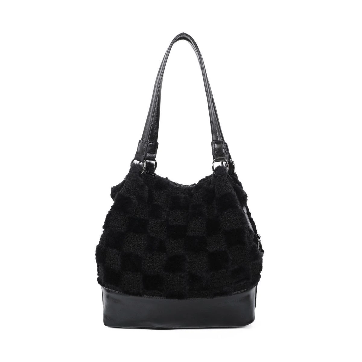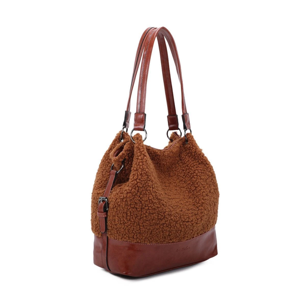 Sac porté sur épaule fabriqué dans un design bimatière avec deux poignées.