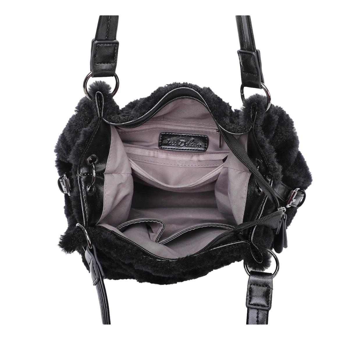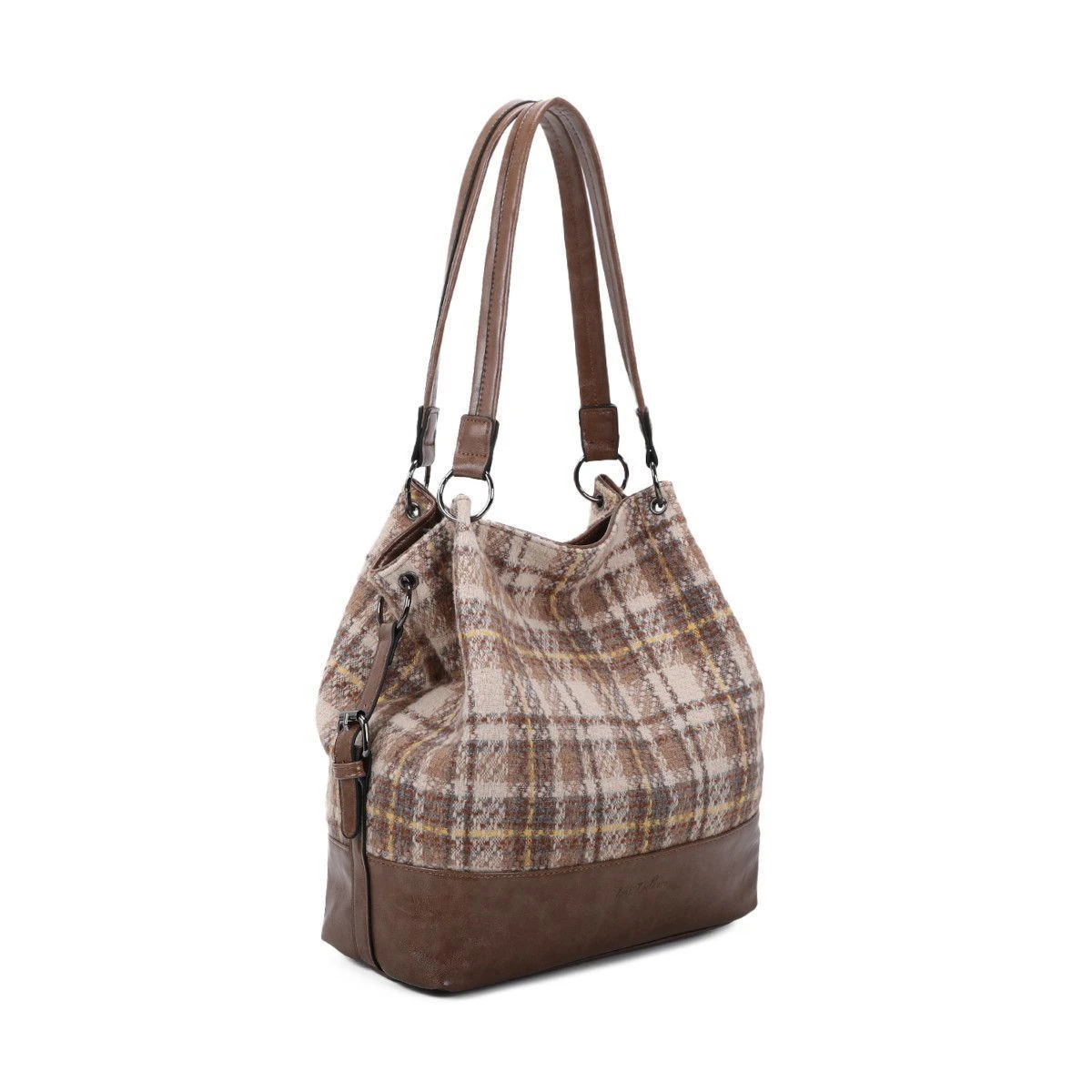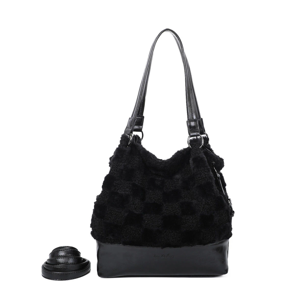 Sac porté sur épaule fabriqué dans un design bimatière avec deux poignées.