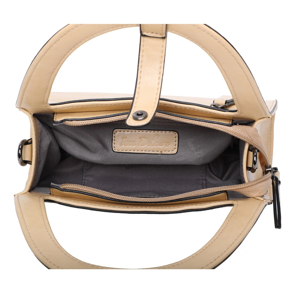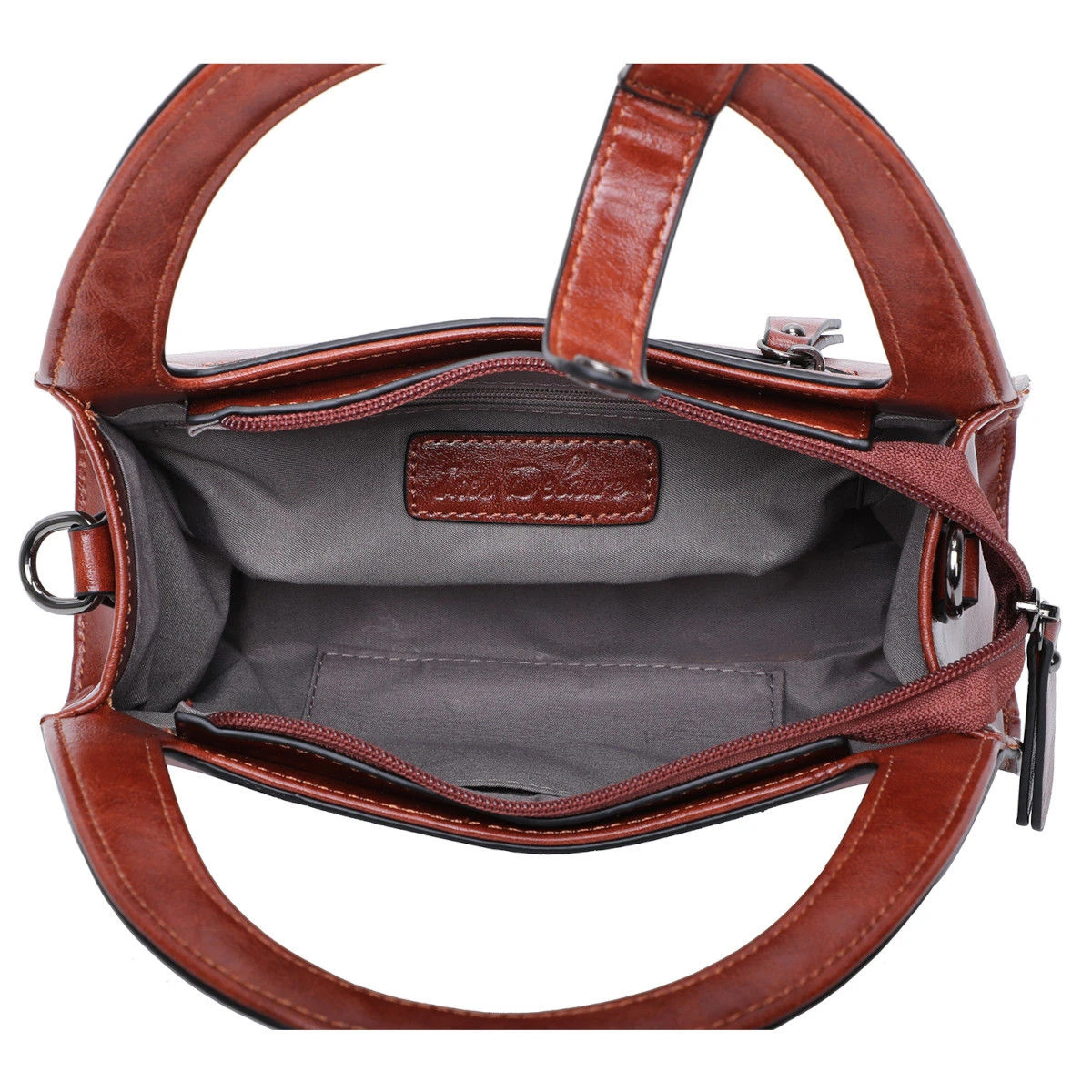 Intérieur : deux poches plates, une poche zippée et une séparation centrale zippée