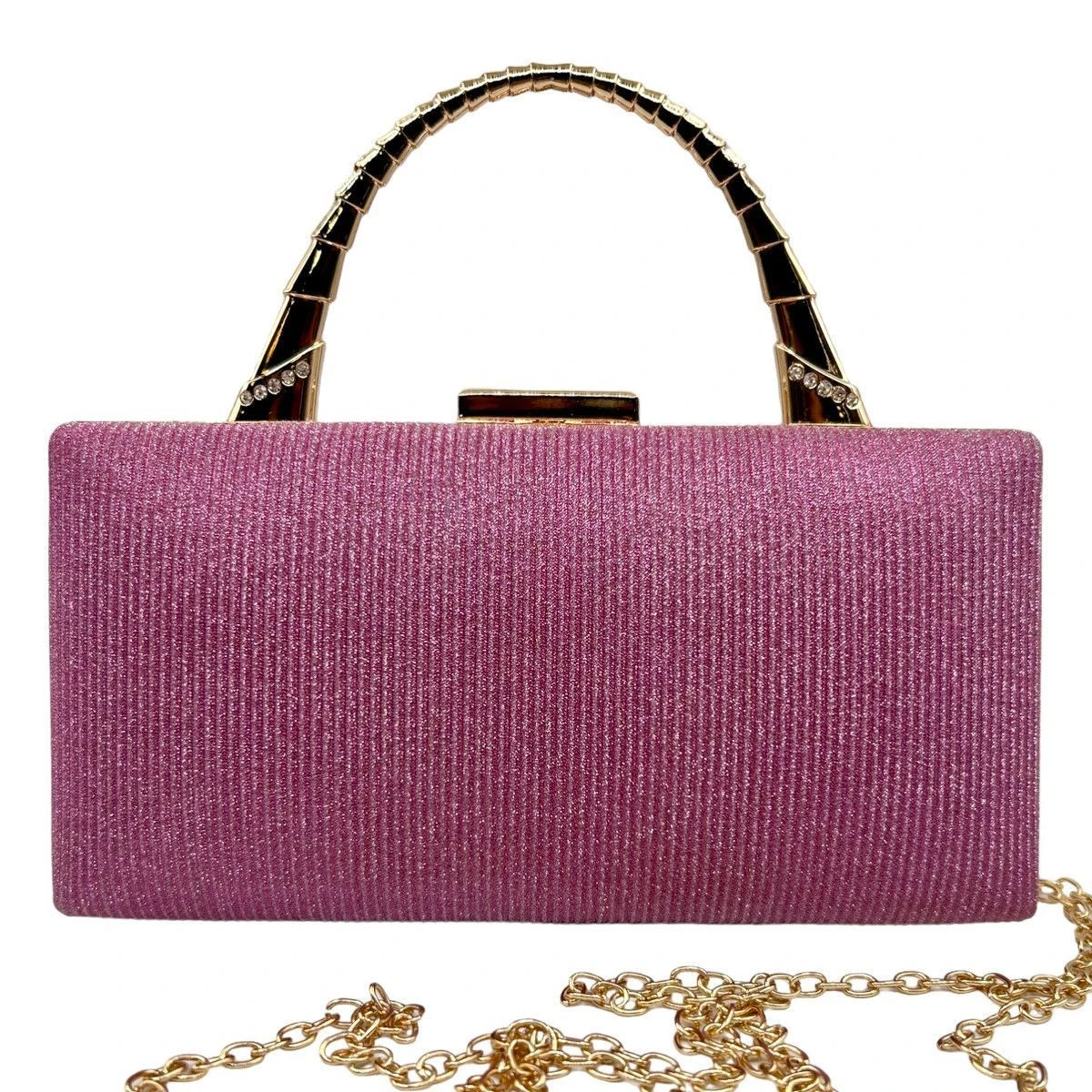 Sac pochette rigide d’une forme rectangulaire avec finition brillante et scintillante.