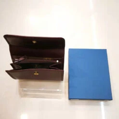 Porte Monnaie Cuir Style Dos à Dos Avec Fermoir Métal Et Pression Bleu