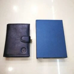 Porte Monnaie Bleu En Cuir De Vachette Avec Protection Anti Piratage